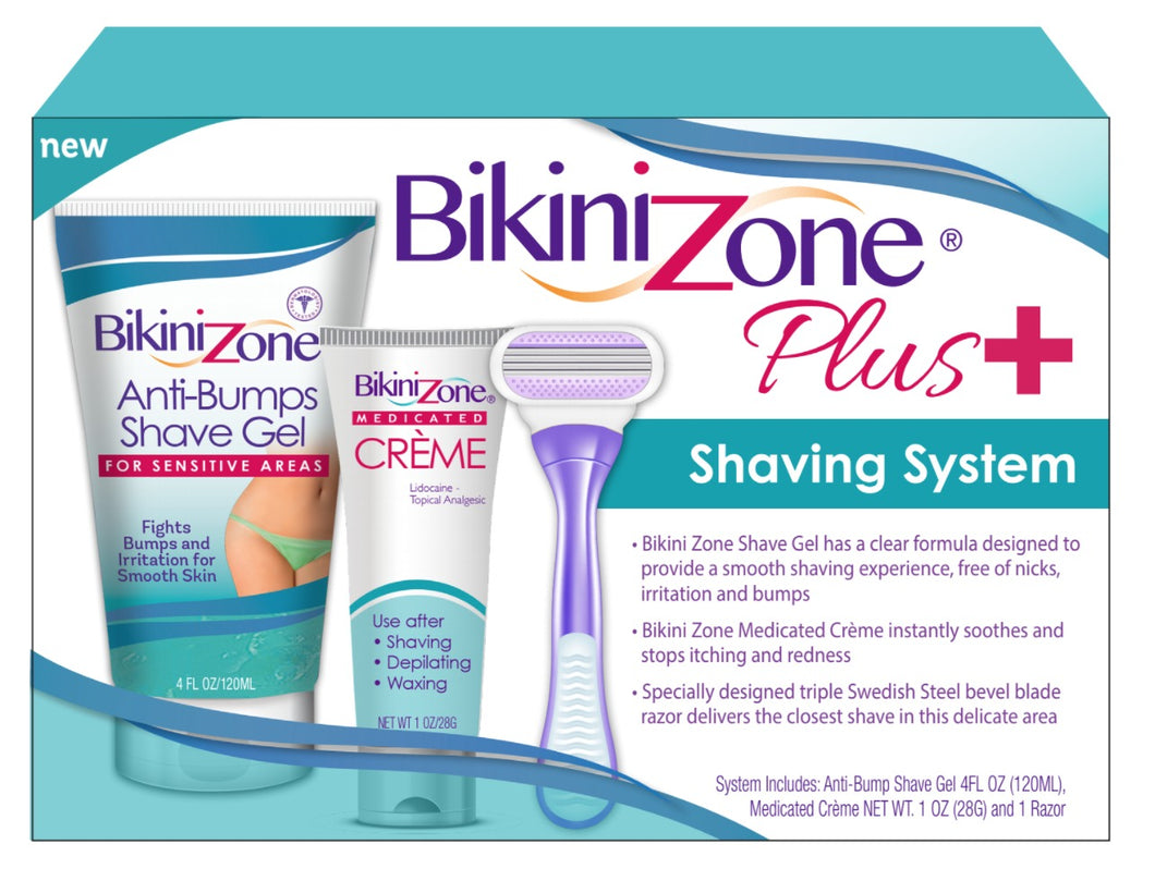 - Bikini Zone Shave Gel has a clear formula designed to provide a smooth shaving experience, free of nicks, irritation and bumps